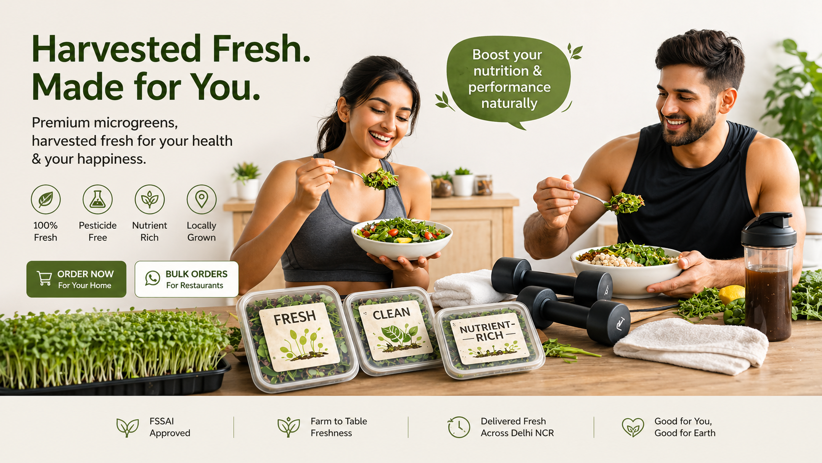 Every BageechaBox order follows a simple promise — we grow, you eat fresh. Our microgreens are sown in small batches, grown in a clean controlled indoor environment in Delhi, and harvested only when your order is placed. No cold storage. No preservatives. Just living greens at their nutritional peak.